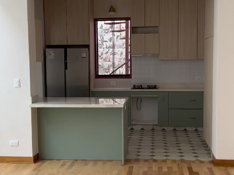 Esta es una casa de 2 pisos con 70 años de antigüedad se remodeló cocina, terraza, garage, lavandería, cuarto principal, cuarto de visitas, escritorio. En el primer piso se eliminó una pared así se le daba continuidad a la zona de entretenimiento, que conforma la chimenea, terraza y cocina. La cocina se remodeló completamente desde instalaciones sanitarias y eléctricas hasta muebles y luminarias. Se abrió una ventana para iluminar la cocina que conecta a la zona de lavandería por la cual se ve la escalera de caracol y mural.